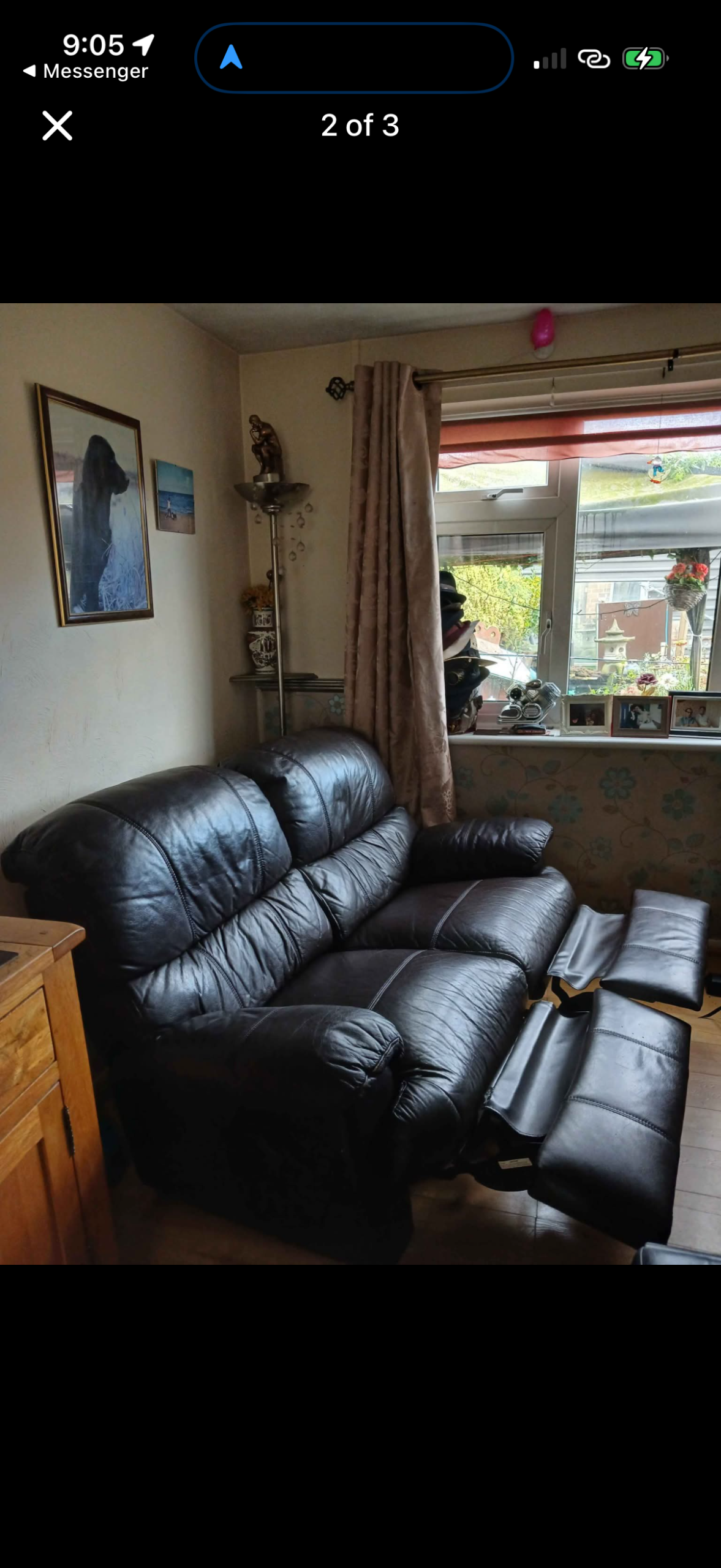 Two seater Recliner sofa chair black with foot stool - Image 2